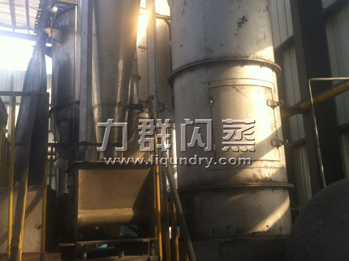 經換熱器加熱后的潔凈空氣被鼓入進風口,以適宜的速度旋入干燥室底部的環隙,然后按切線方向進入干燥室,并呈螺旋狀上升:同時,物料則由可無級調速的加料器定量加入塔內。在干燥塔內,物料與熱空氣進行充分、高效的質熱變換,被干燥的粉狀物料隨同熱風一起輸送至分離器,其中成品收集包裝,而尾氣則進一步經除塵裝置處理后排空。